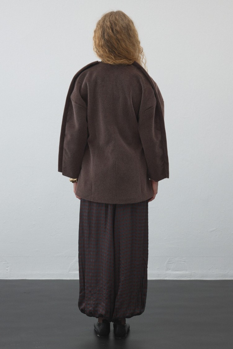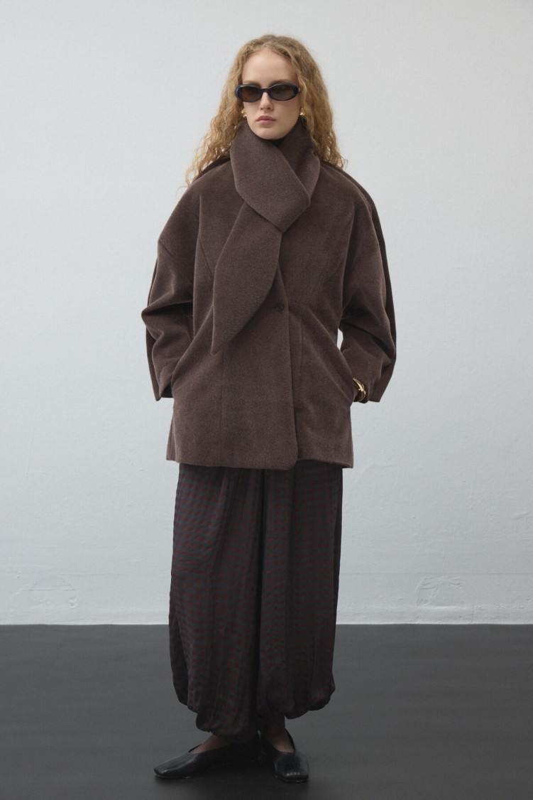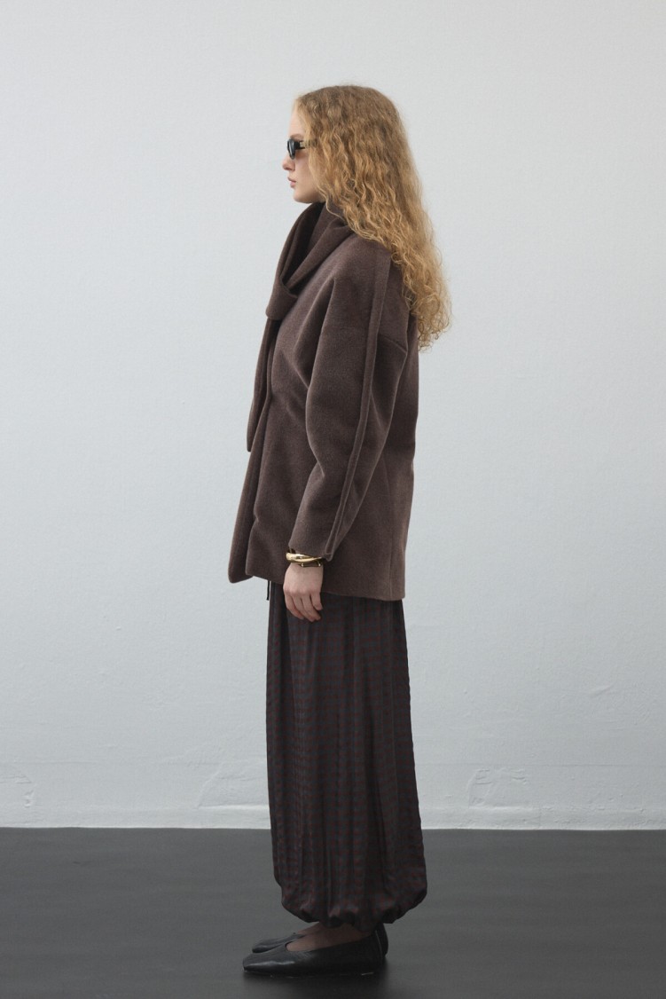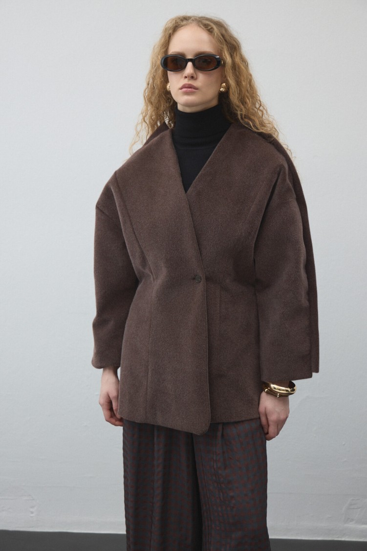Düğmeli kruvaze kapaması, bel hattını zarifçe vurgularken; Astarlı iç yapısı sayesinde hem konforlu hem de formunu koruyan bir parça.