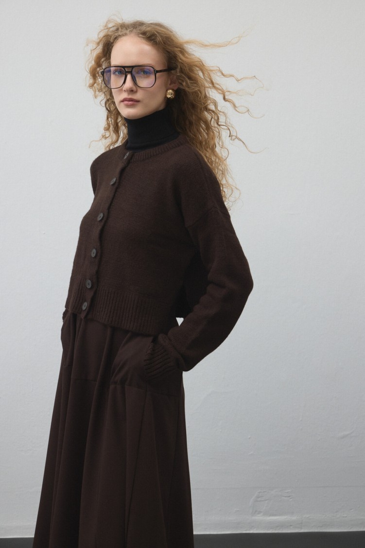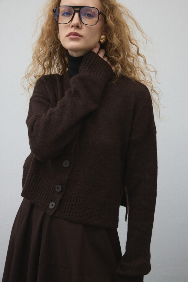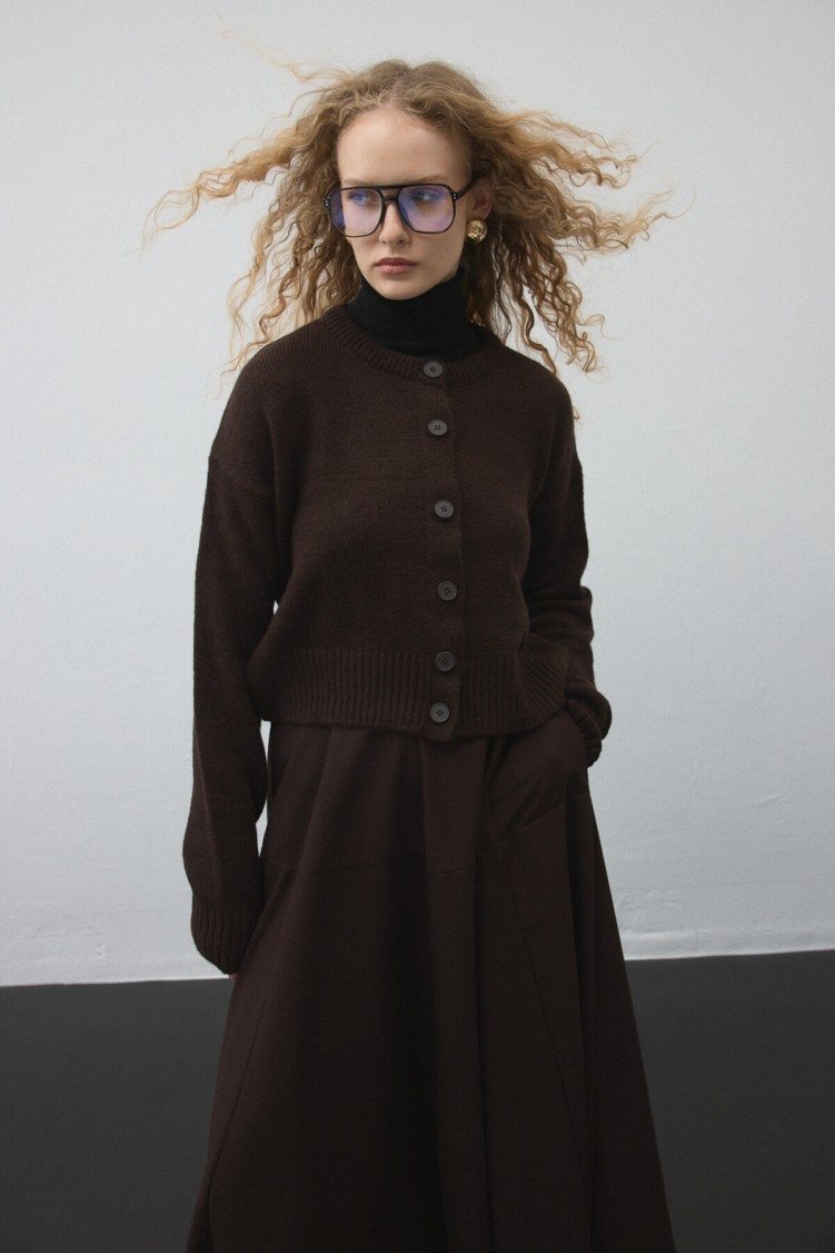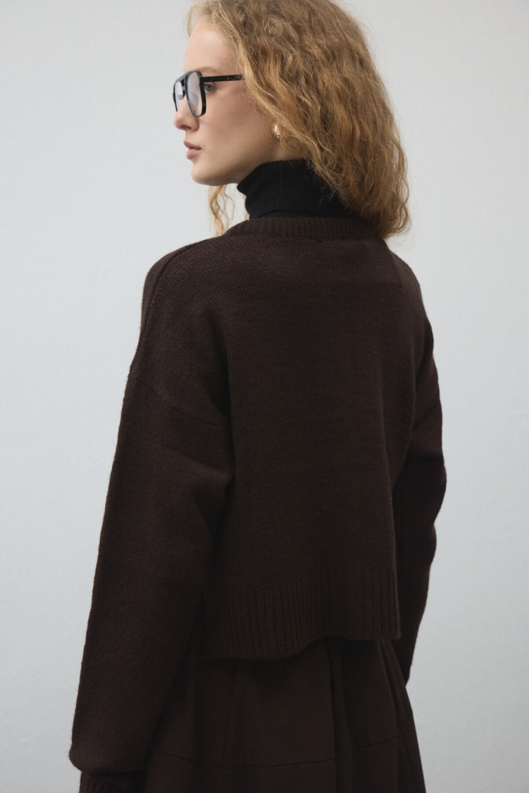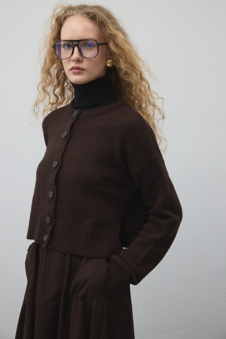 Gelince Haber VerMinimal düğme detaylarıyla katmanlı stillerin tamamlayıcısı, zamansız bir triko parça.