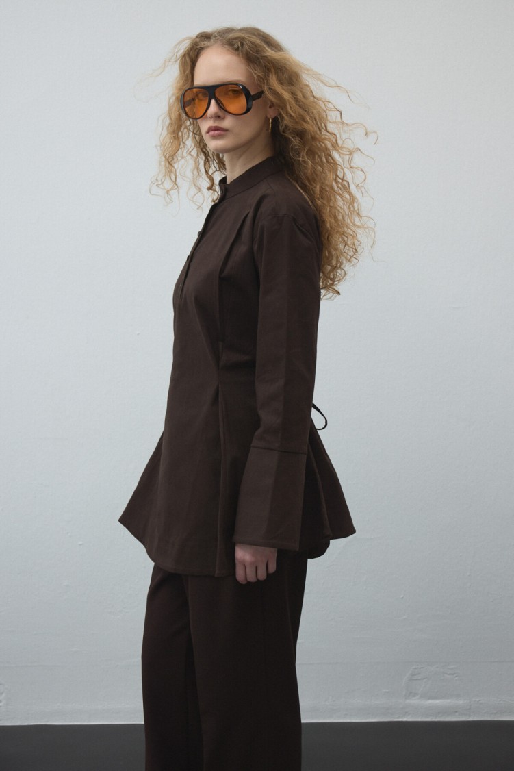Yapılandırılmış gabardin dokusu ve volan detayıyla hareket kazanan bu tunik, sabit kemeriyle bel hattını zarifçe vurgular. Akış ve form dengesini bir arada sunan tasarımıyla günlük stilin modern ve güçlü tamamlayıcısı.
