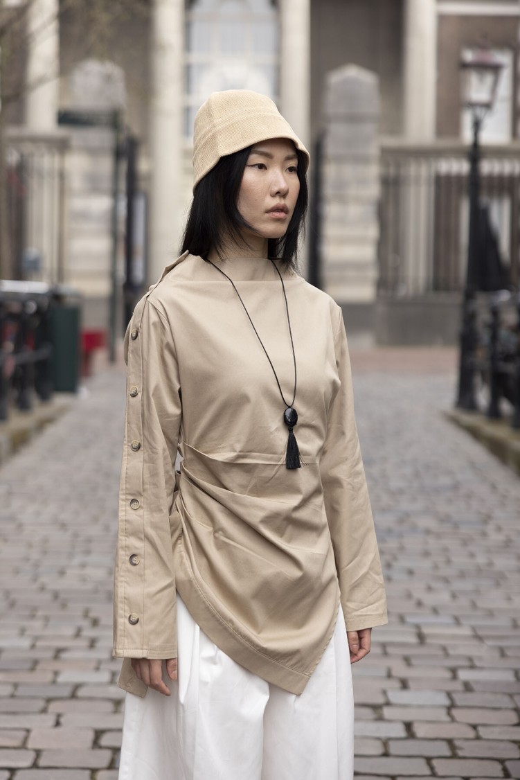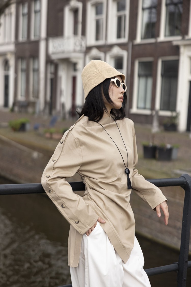 Gelince Haber VerAsimetrik kesimiyle dikkat çeken bir siluet. Farklı parçalarla kolayca kombinlenir ve günlük stile adapte gömlek modeli.