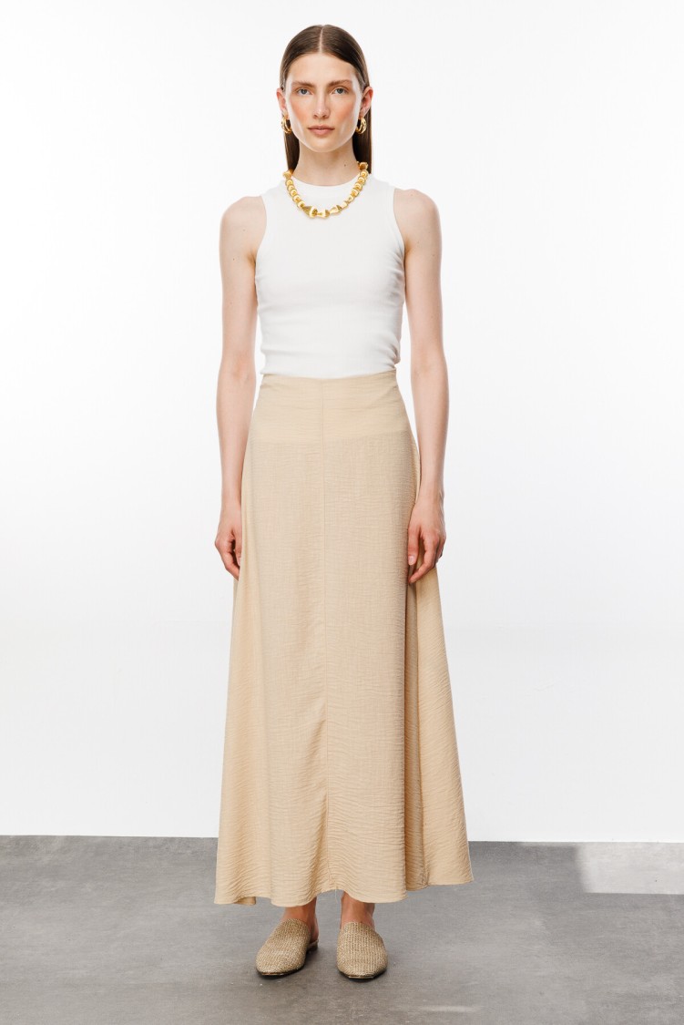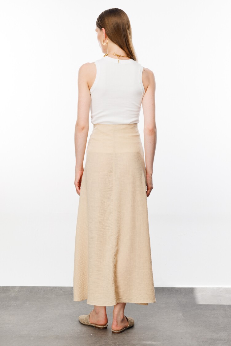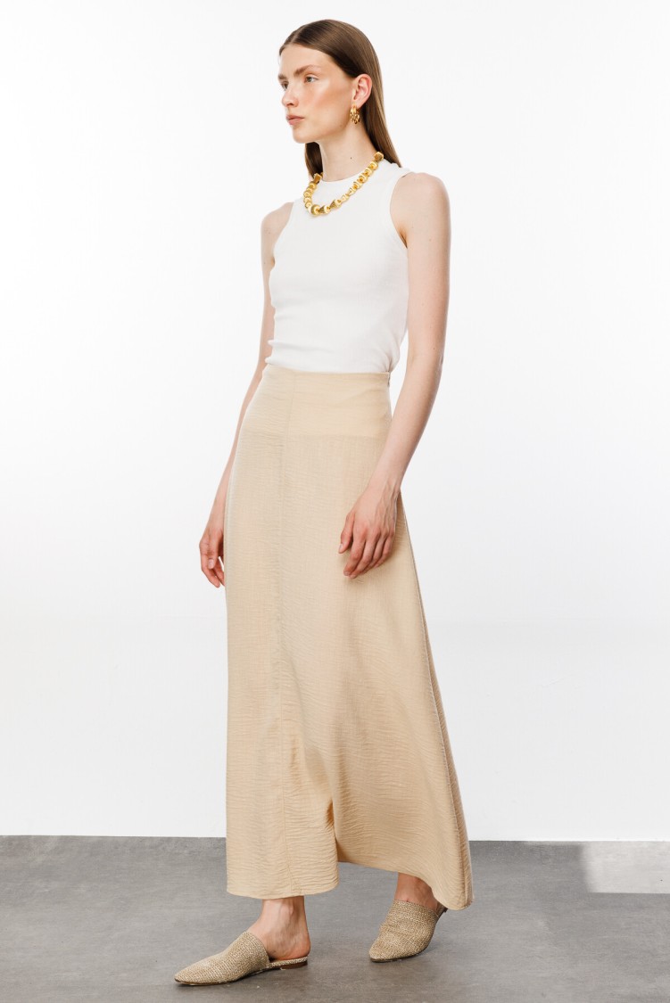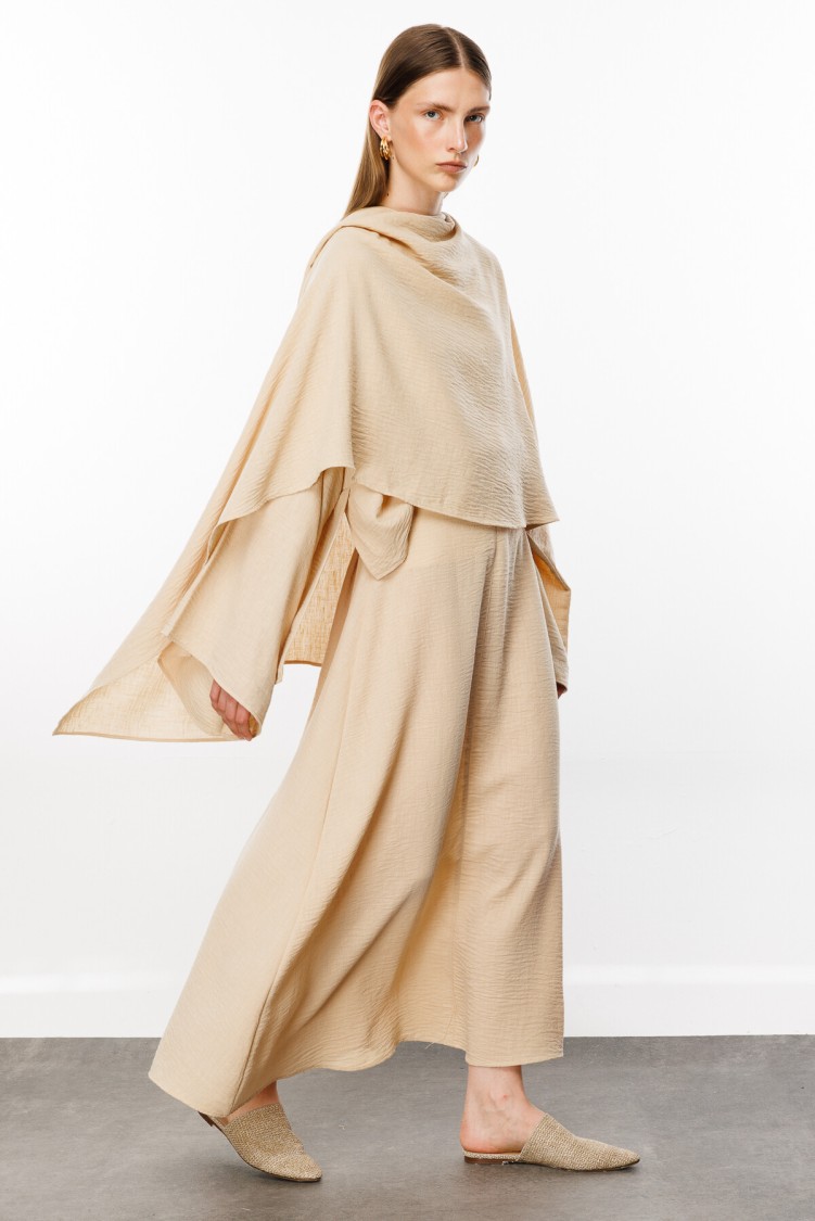 Gelince Haber VerNatura eteği, takımı olan asimetrik pelerin gömlek ile kombinleyerek günlük stilinize adapte edebilirsiniz.