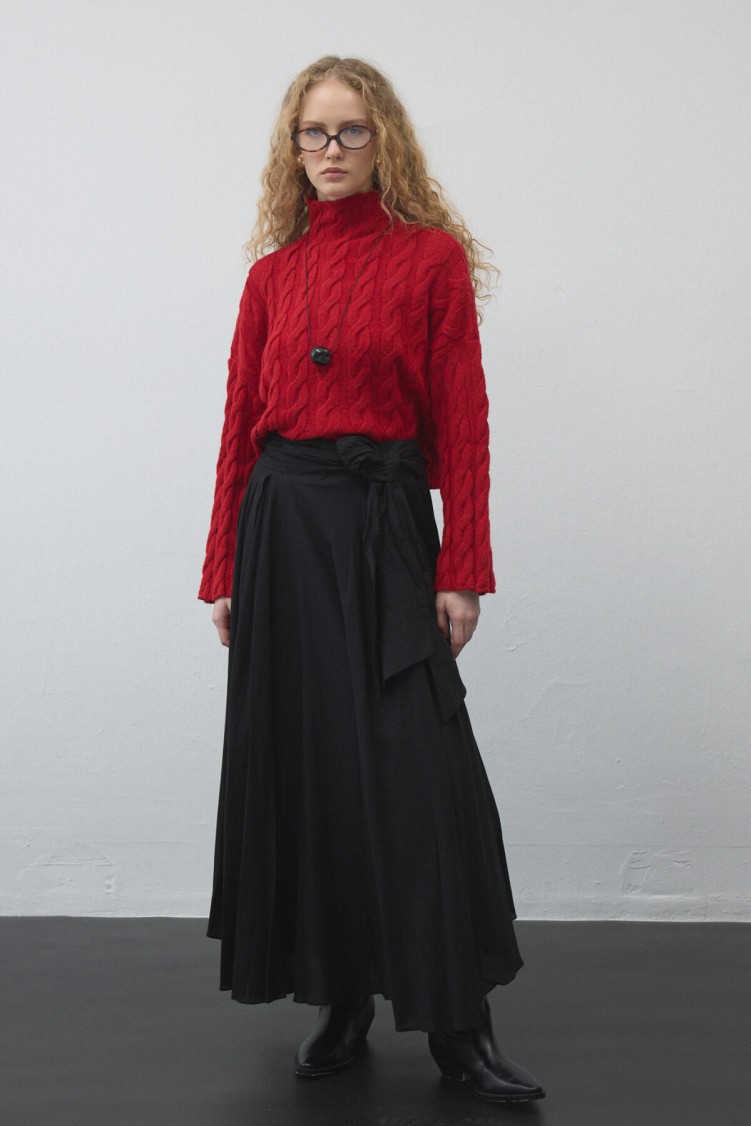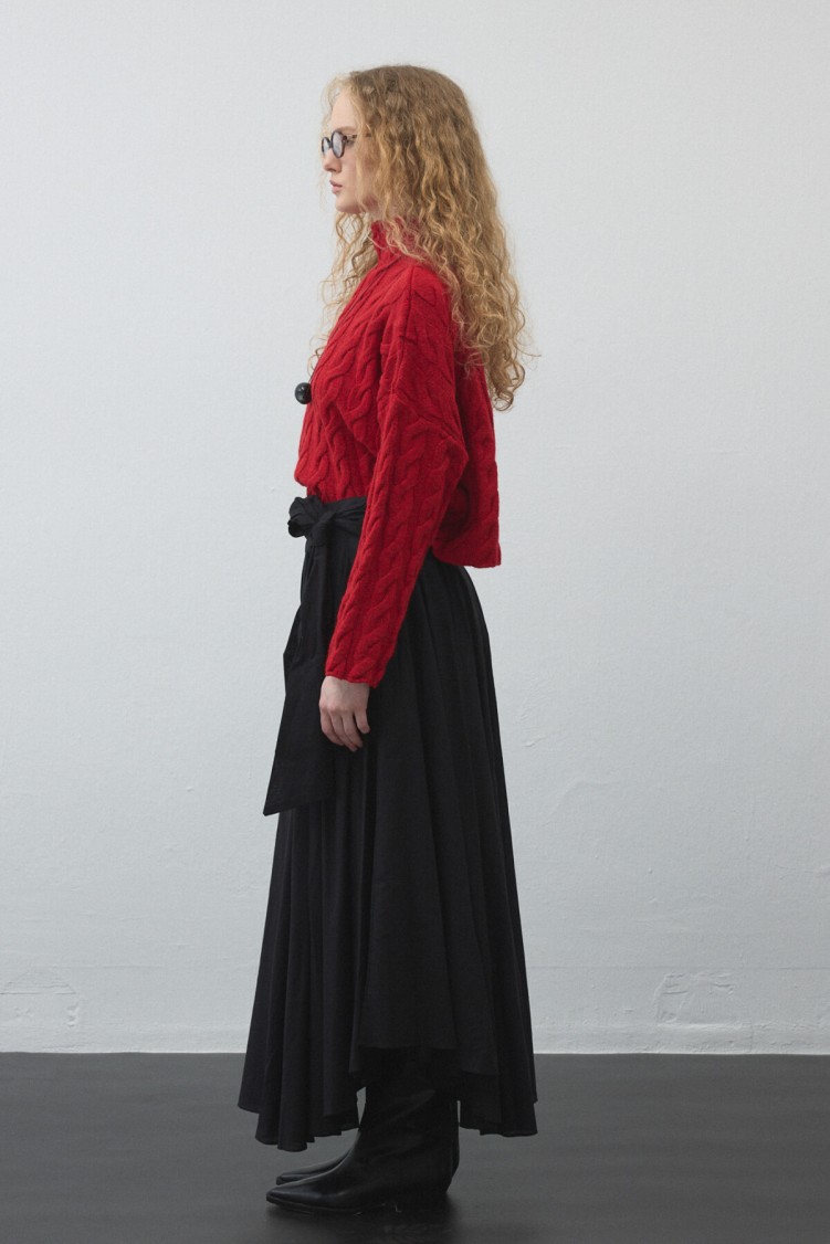 With its lightweight voile texture and asymmetric form, this piece gains movement and fluidity with every step, adding a refined touch to everyday style.