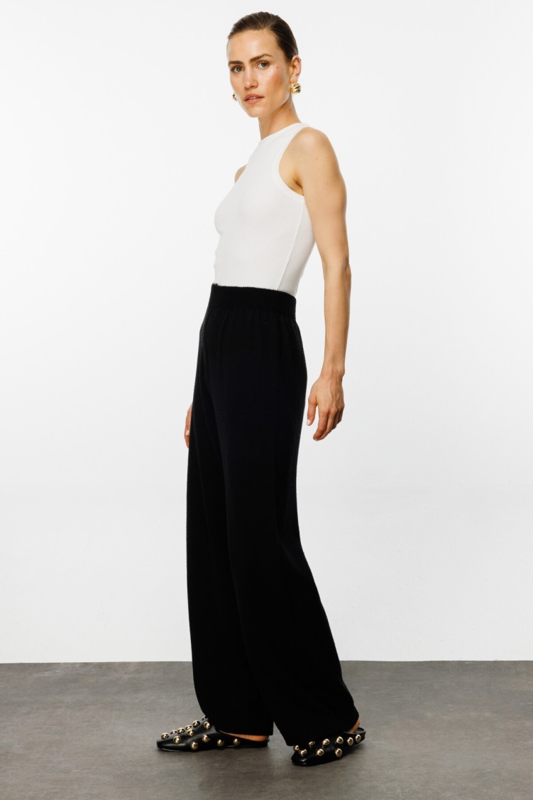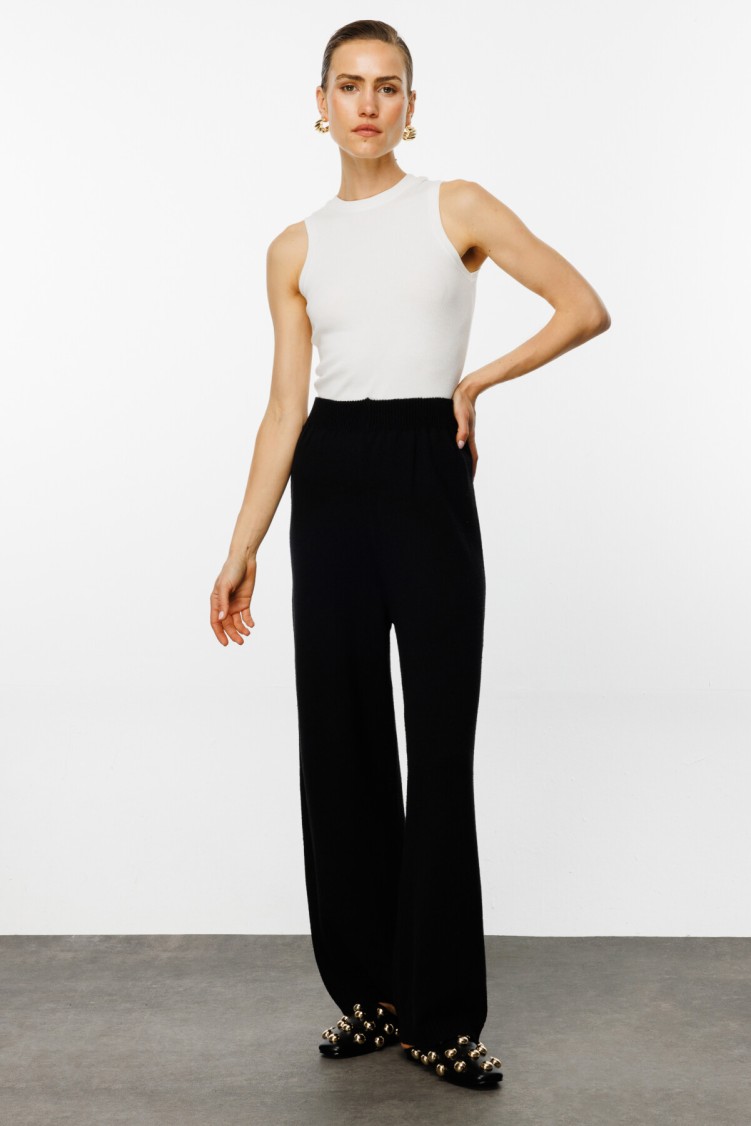 Pamuk dokuma kumaşıyla gün boyu konfor sunun triko pantolonu, triko atkılı kazak ile kobinleyerek total look görünümü elde edebilirsiniz.
