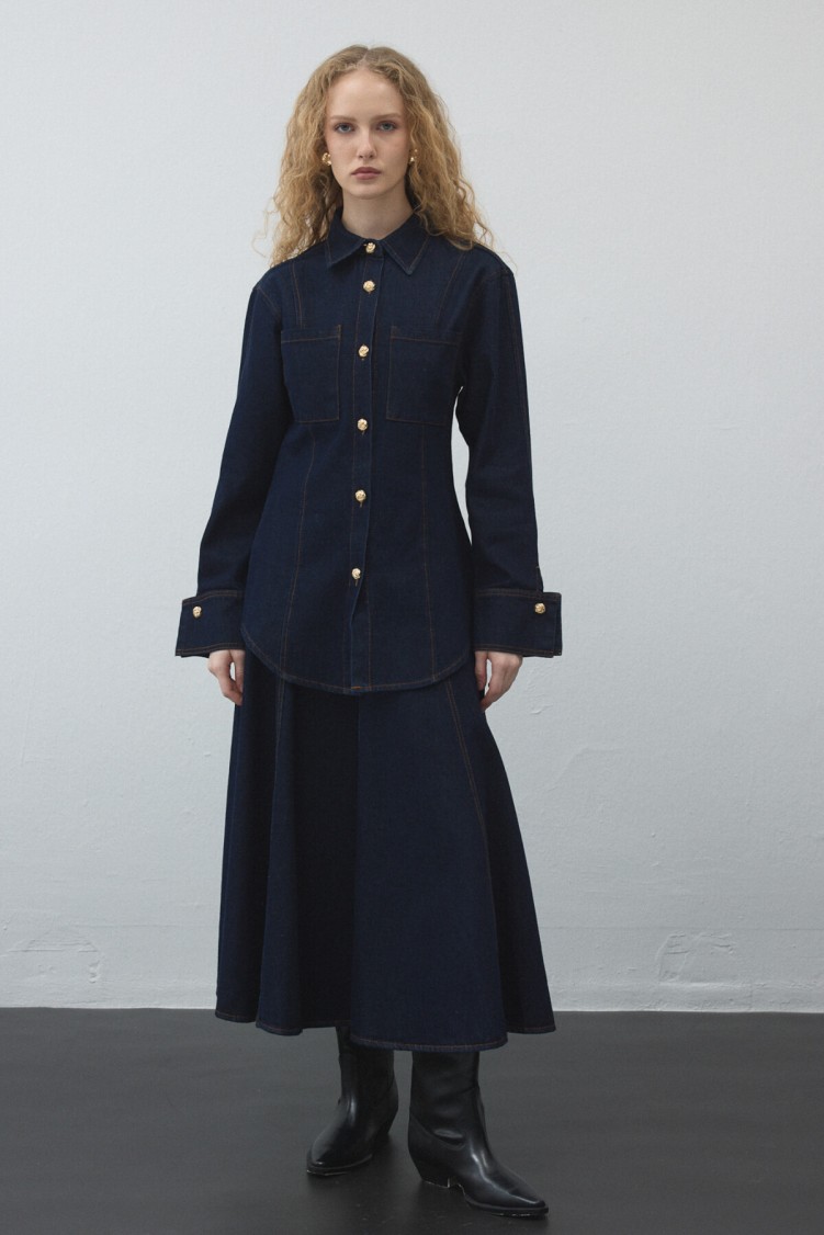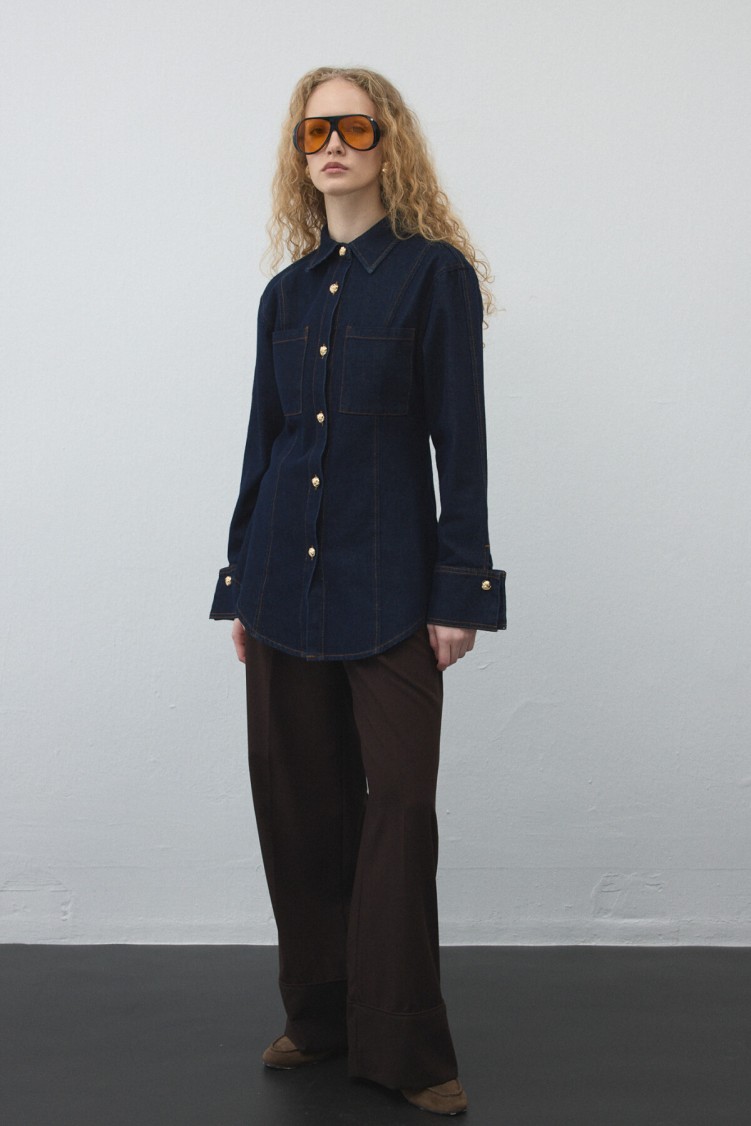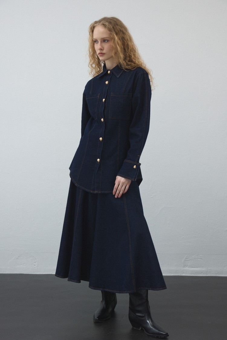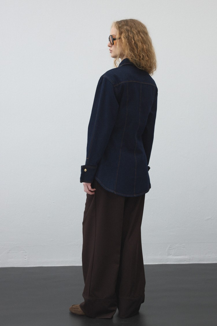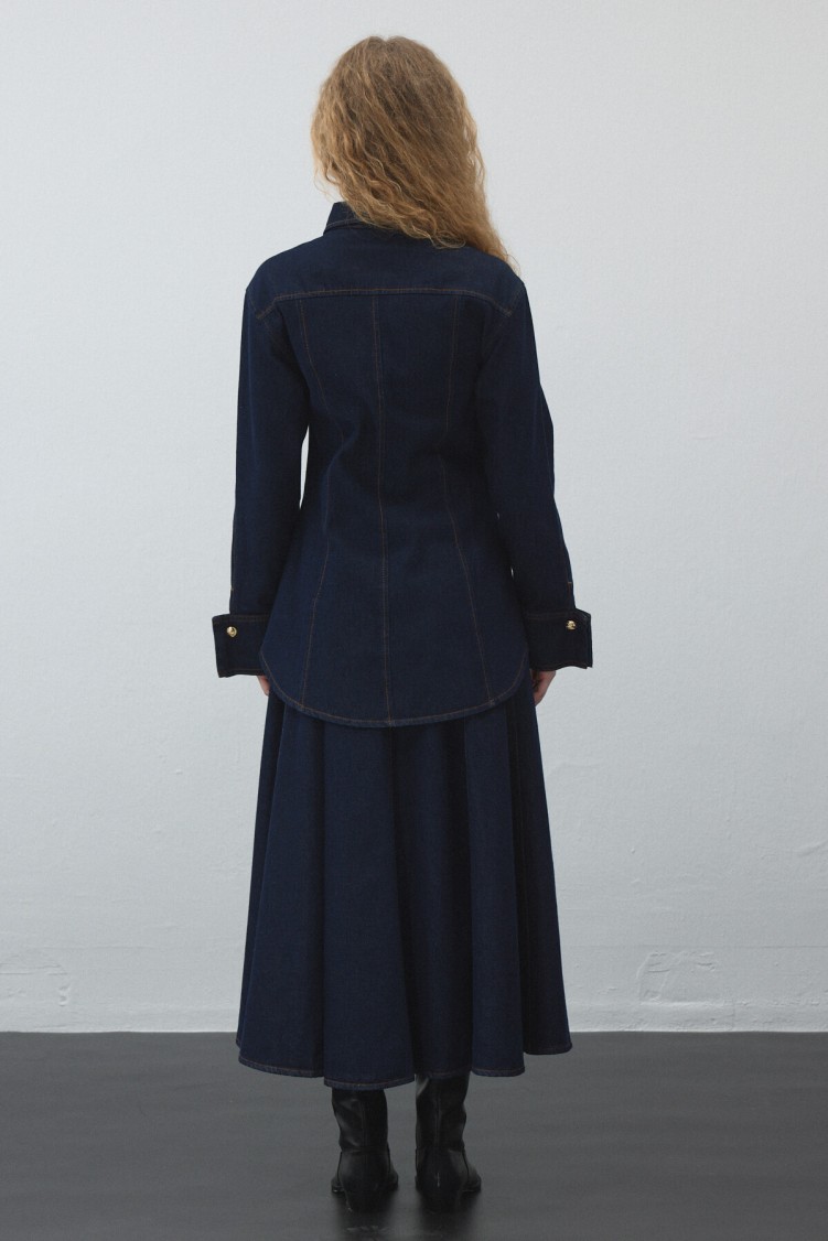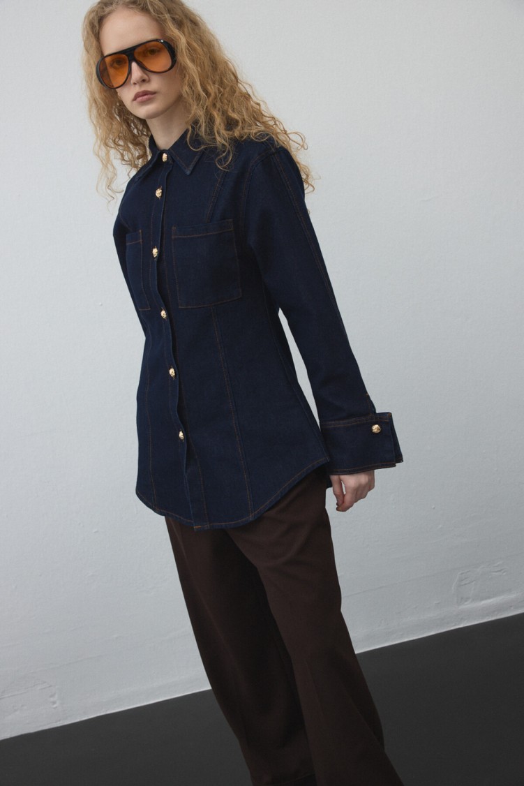Notify me when its in stockThis jacket, made from non-stretch cotton denim, adds style to your everyday look with its collared, cuffed design and gold-detail buttons, while offering practical wear. It can be paired with matching fabric pants or skirt.