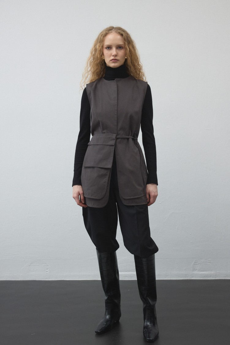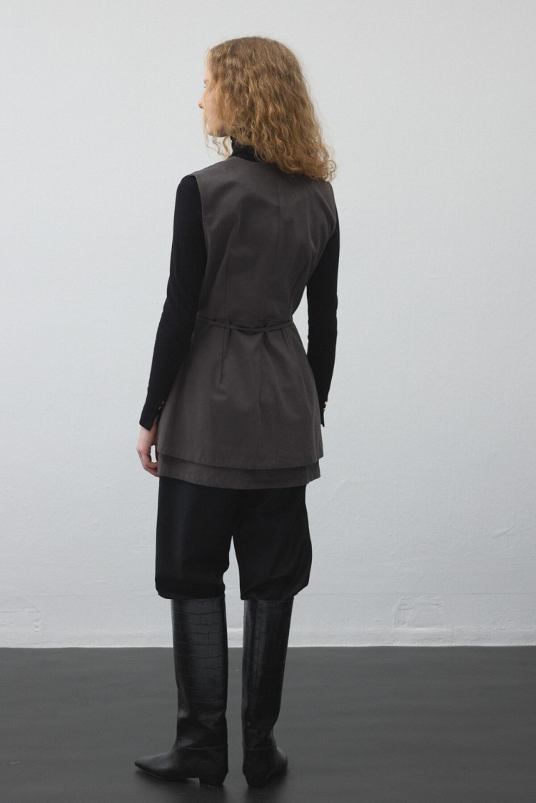 Notify me when its in stockThe gabardine pocketed belted vest is a perfect complement for both street style and classic chic looks, adding a unique touch to your style. The pocketed belt detail at the waist provides an elegant stance while fitting the body to create a flattering silhouette.