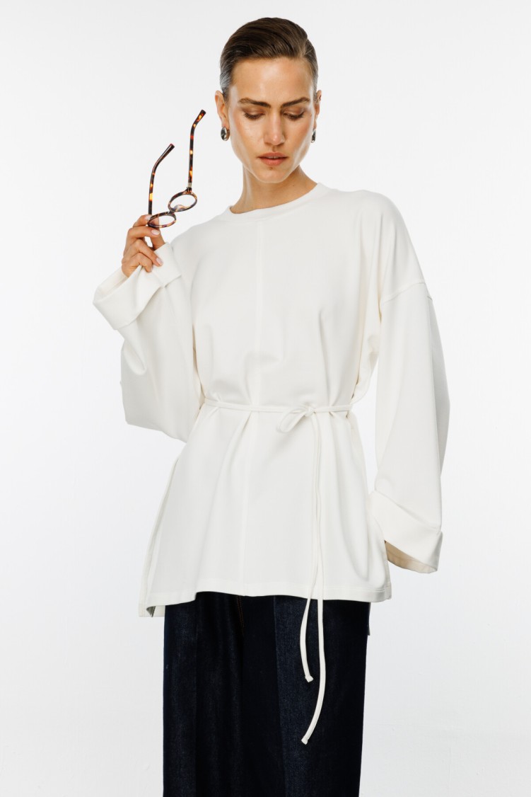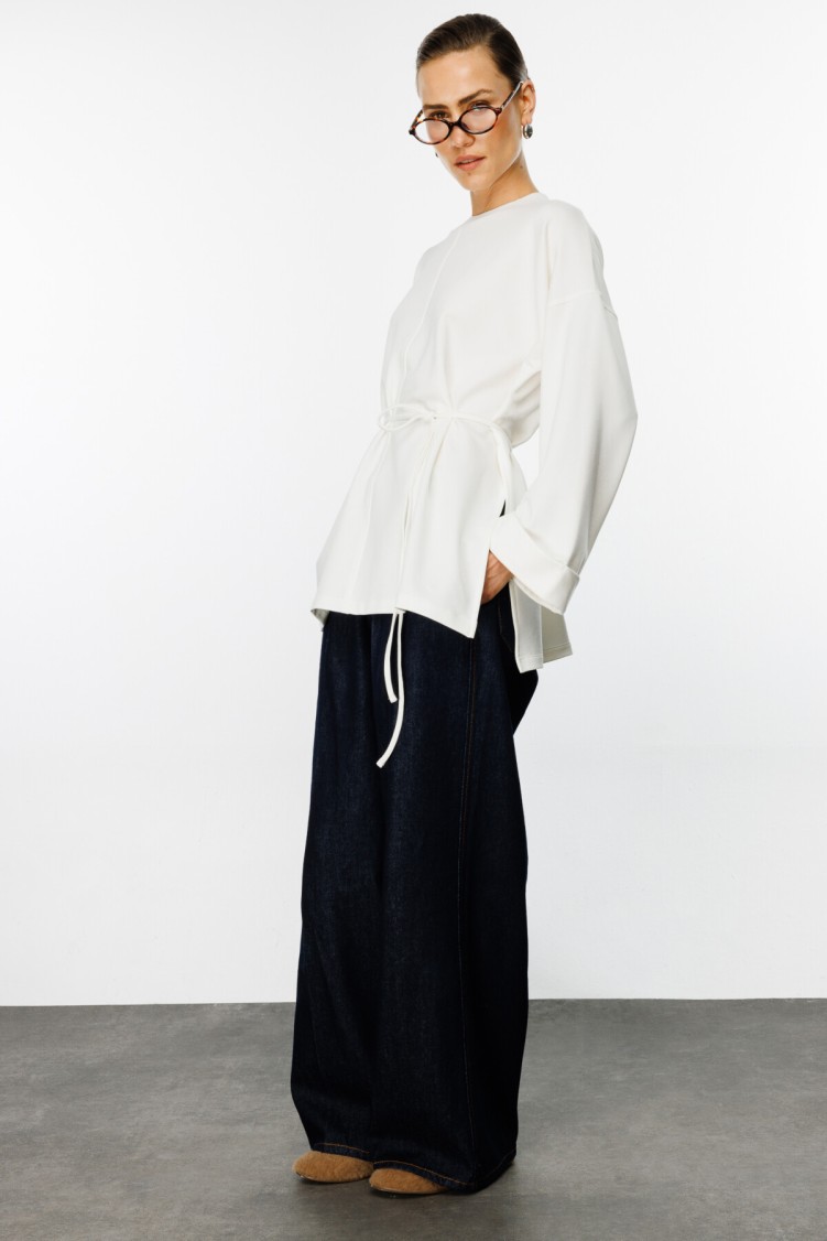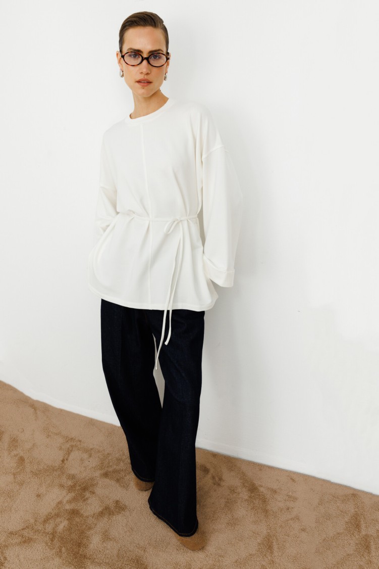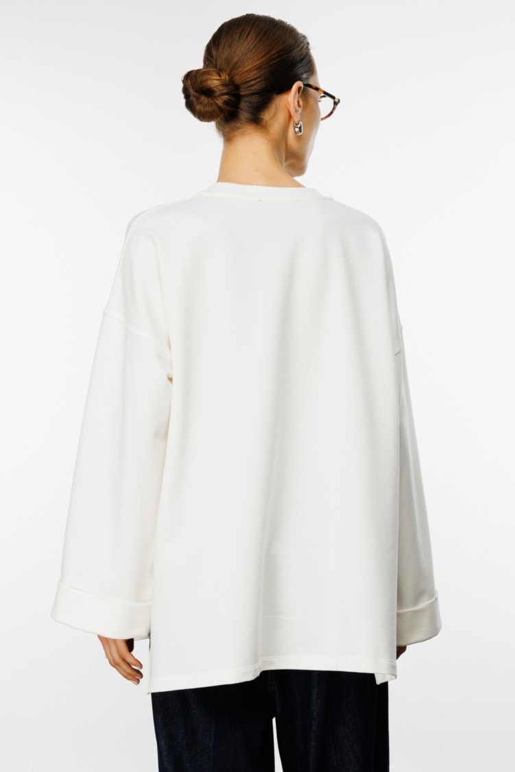 Ekru Yırtmaçlı Oversize Sweatshirt